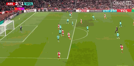 第90分钟,狼队的阿洛科达尔将比分扳平。然而补时阶段,萨卡虚晃后传中送到禁区,热苏斯抢点头球攻门造成干扰,莫斯克拉不慎自摆乌龙,萨卡第二次造成对手乌龙球,阿森纳也将比分最终锁定在了2比1。