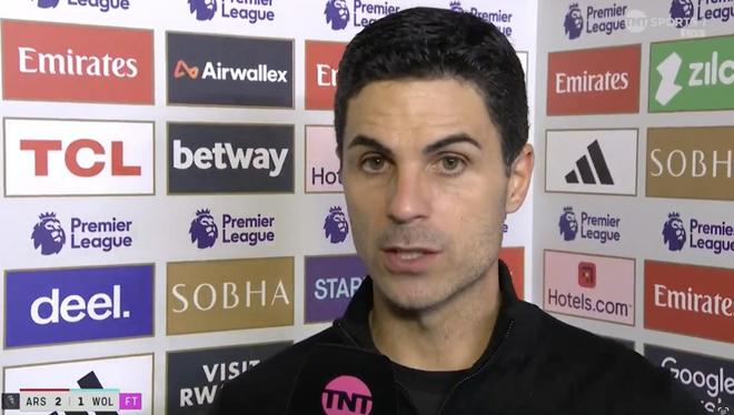 英超第16轮,阿森纳主场2-1击败狼队,赛后,枪手主帅阿尔特塔接受了TNT体育的采访。