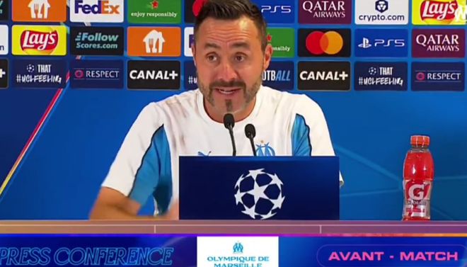 雷速体育9月29日讯 欧冠联赛阶段第2轮,马赛将坐镇主场迎战阿贾克斯。赛前,马赛主帅德泽尔比出席了新闻发布会。