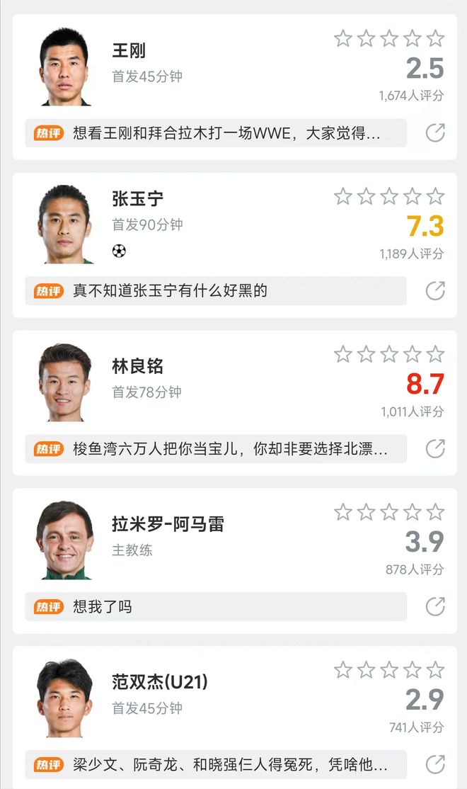 再就是王刚,他作为球队队长出战45分钟,丢失球权次数达到了4次,并且面对姜至鹏的冲击几乎都落入下风,而在赛后,王刚也是被评为全场最差,得分仅有2.5分,可以说,北京国安应该和王刚说再见了。