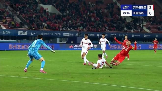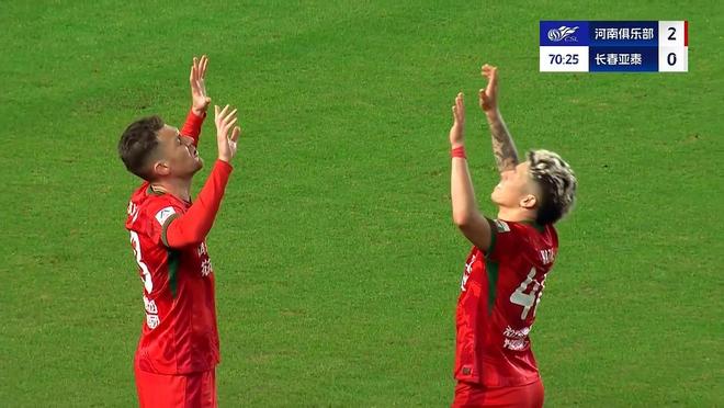正当长春亚泰准备大举进攻的时候,第70分钟再遭打击!河南队边路传中,禁区内的马亚轻松头球再次洞穿亚泰的球门,2:0!比赛基本锁定胜局。第89分钟,长春亚泰中场发动快速反击,一脚直塞直接打穿防守,跟上的奥莫伊胡安佛起脚劲射,被门将挡出底线,亚泰错失最后的一线生机。