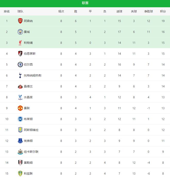英超变天8轮后赔率巨变!阿森纳第1+夺冠概率超5成,曼联升第5